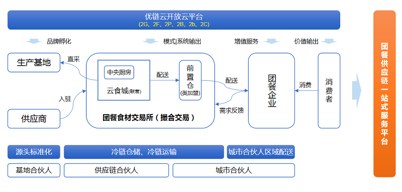 这些关键要素,正是比较适合当下供应链竞争环境,而下一站,中膳优链云主要聚焦在团餐供应链上,因此,中膳优链云最终定位为团餐供应链一站式服务平台,促进团餐供应链产业发展升级。
