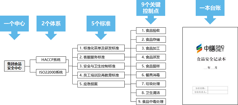 公司食安中心归属集团运营中心,是专门负责集团所有门店食品安全、消防安全以及生产安全的引导学习及巡查督导的专业职能部门。通过引进学习国际先进的质量体系ISO2200及HACCP,再结合本公司现状,制定出适合实操能简单有效且量化落地的质量管理体系,保障指导集团各分子公司日常食品安全,完善集团食安管理制度,构建集团食安监管新模式。