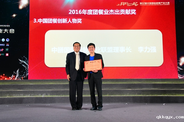 ▲中膳李力强获得中国团餐产业人物奖,中国烹饪协会李亚光副会长颁奖